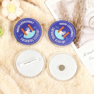گیرههای موی اکریلیک شخصیسازی شده، نشانهای دکمهای و لوازم جانبی با طرحهای چاپی سفارشی، طرحهای کارتونی، شخصیتهای انیمه یا نامها ایجاد کنید. این پینهای همهکاره دارای پشتی مغناطیسی برای اتصال ایمن به سطوح مختلف هستند.